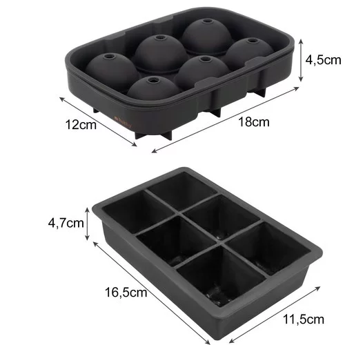 • Rozmery formy na ľadové gule: 12 x 18 x 4,5 cm, priemer gule: 4 cm