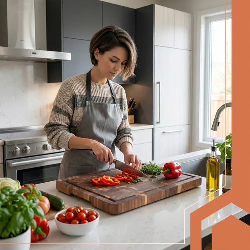 Robustná a elegantná kuchynská doska z akáciového dreva ponúka stabilitu, odolnosť voči vlhkosti a dlhú životnosť. Ideálna je ako pre každodenné krájanie, tak pre štýlové servírovanie mäsa, zeleniny, syrov alebo pečiva. Pohodlné rukoväte a drážka pre odtok šťavy zvyšujú komfort pri práci, zatiaľ čo prírodná textura dreva podčiarkuje jedinečný dizajn vašej kuchyne.