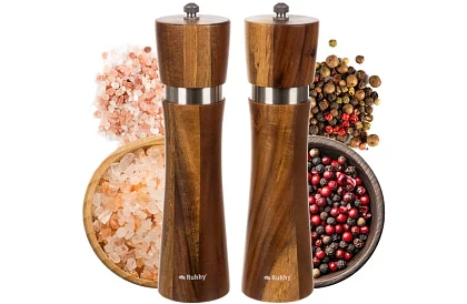 Zabezpečujú čerstvo mleté korenie s možnosťou nastavenia jemnosti mletia, čo umožňuje upraviť chuť jedál presne podľa potreby. Keramický mechanizmus poskytuje dlhú životnosť a spoľahlivé mletie aj tvrdých korenín, ako je himalájska soľ alebo čierne korenie. Elegantné akáciové drevo dodáva mlynčekom odolnosť a štýl, ideálne pre každú kuchyňu alebo ako darček pre milovníkov varenia.