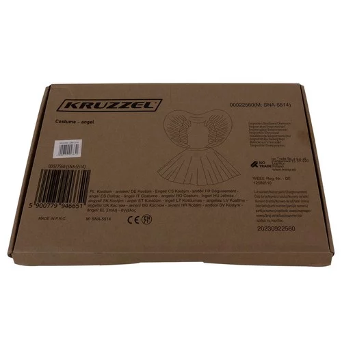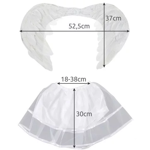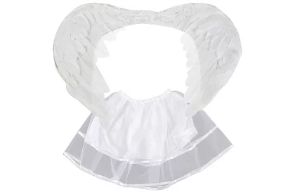 Premeňte svoje dieťa na krásneho anjela s týmto elegantným kostýmom. Dvouvrstvová sukňa s gumičkou a jemné biele krídla z peria vytvárajú dokonalý outfit pre vianočné predstavenie, karneval alebo tematickú párty. Kostým nielenže vyzerá nádherne, ale tiež podporuje hru, fantáziu a radosť z prevlekov.