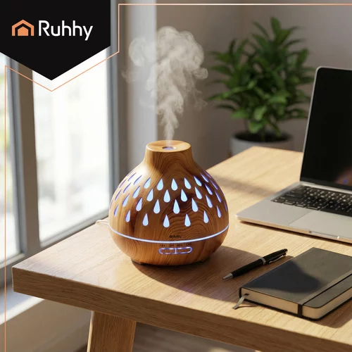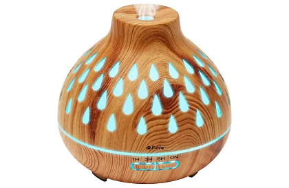 Aroma difuzér kombinuje zvlhčovanie vzduchu a aromaterapiu, čím vytvára príjemnú a relaxačnú atmosféru doma či v kancelárii. Ultrazvuková technológia zabezpečuje jemnú, chladivú hmlu napustenú esenciálnymi olejmi a 400ml nádržka umožňuje až 10 hodín nepretržitého prevádzky. Tichý chod (<36 dB), farebné LED podsvietenie, funkcia automatického vypnutia a časovač podporujú pohodlné a bezpečné použitie. Svetlá drevená kresba dodáva moderný a dekoratívny prvok do interiéru.