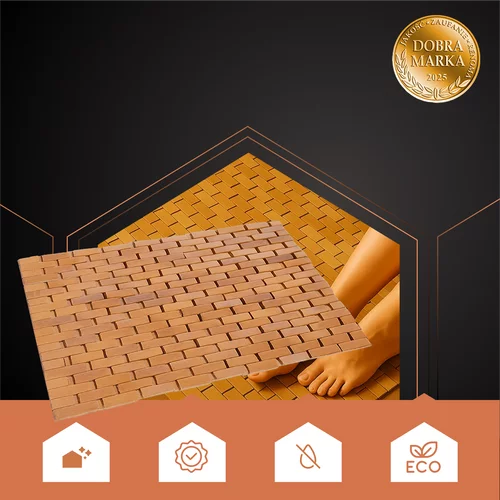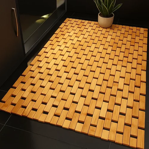 Elegantná a praktická predložka pred vaňu alebo do sprchového kúta spája prírodný vzhľad s funkčnosťou. Vyrobená z bambusových lamiel, je vodotesná, rýchlo schne a zabraňuje hromadeniu vlhkosti a plesní. Protišmykové podložky zabezpečujú bezpečné používanie aj na mokrom povrchu.