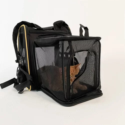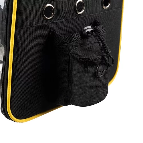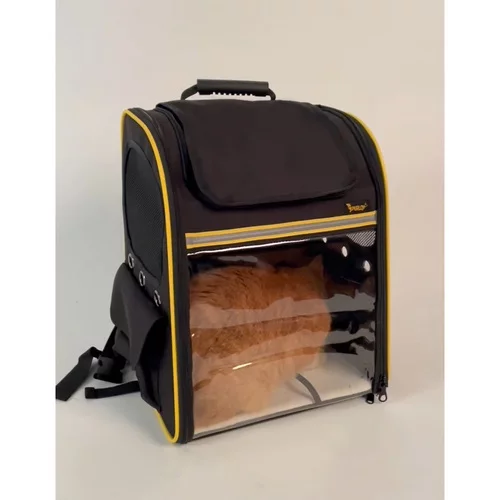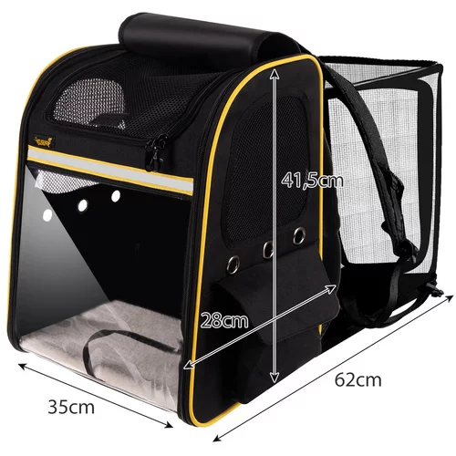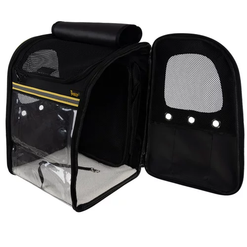 Praktický a bezpečný batoh umožňuje pohodlnú prepravu psa, mačky alebo králika. Poskytuje dostatočné vetranie vďaka sieťovaným oknám a priehľadnej prednej fólii, aby miláčik mohol sledovať okolie. Vyztužená konštrukcia a mäkká vložka zabezpečujú stabilitu a komfort pri cestovaní, zatiaľ čo bočné vrecká ponúkajú priestor na pitie, desiatu alebo drobné príslušenstvo. Ideálny spoločník na výlety a spoločné dobrodružstvá.