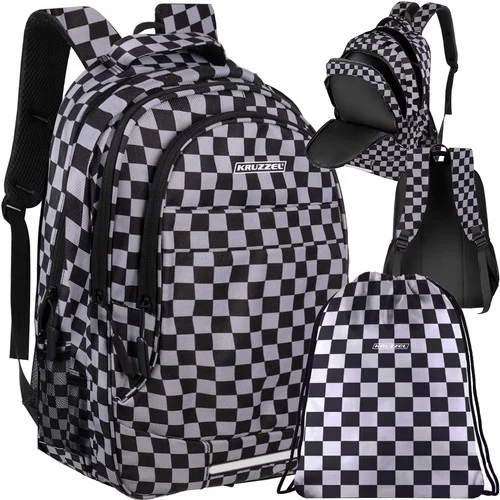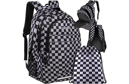 Praktický a odolný batoh vhodný pre školu, šport i každodenné nosenie, ktorý spája funkčnosť, pohodlie a výrazný kockovaný dizajn. Kvalitné materiály, polstrované chrbát a premyslené vnútorné členenie zabezpečujú pohodlné nosenie a bezpečné uloženie kníh, zošitov i elektroniky. Súčasťou setu je aj taška na obuv alebo telocvik, zladená so štýlom batohu.