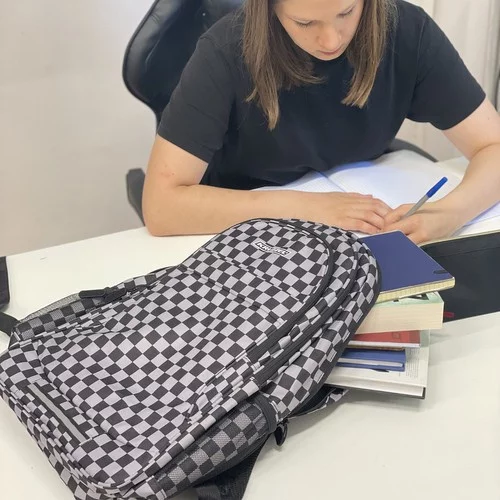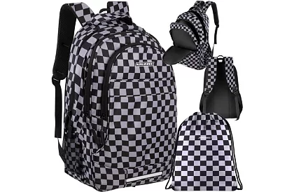 Priestranný a odolný batoh určený pre školu, šport i každodenné použitie, ktorý kombinuje vysokú kapacitu, pohodlie pri nosení a výrazný kockovaný dizajn. Kvalitné materiály, ochranné polstrovanie a premyslené usporiadanie priestoru zaisťujú bezpečné uloženie kníh, notebooku i osobných vecí. Súčasťou je aj praktická taška na obuv alebo telocvik, zladená so štýlom batohu.