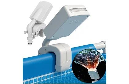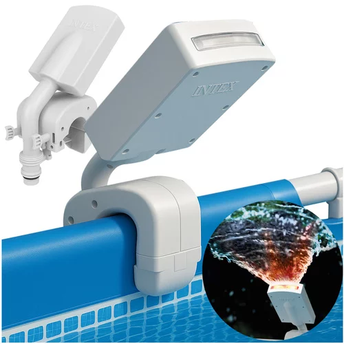 Doprajte záhradnému bazénu atraktívny efekt a zábavu, ktorá kombinuje farebné LED osvetlenie s praktickou funkčnosťou. Fontána funguje s väčšinou bazénových čerpadiel, nezvyšuje náklady na prevádzku a vďaka vstavanému hydroelektrickému generátoru nepotrebuje elektrickú energiu. Jednoduchá montáž a univerzálny držiak umožňujú rýchle pripojenie k bazénom Intex Prism Frame a Ultra Frame, zatiaľ čo LED svetlá v štyroch farbách zabezpečia jedinečnú atmosféru pre večerné kúpanie.