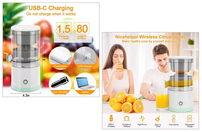 Umožňuje jednoducho pripraviť 100% prírodnú ovocnú šťavu, ktorá telu dodá dôležité vitamíny a živiny. Bezdrôtový a prenosný dizajn umožňuje vychutnať si čerstvú šťavu kedykoľvek a kdekoľvek, stlačením jediného tlačidla. Kompaktné prevedenie a vstavaná batéria zaručujú pohodlné používanie doma, na záhrade či pri vonkajšom posedení.