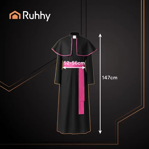 Klasický biskupský kostým spája autentický duchovný vzhľad s pohodlným nosením. Čierna sutana, plášť s golierom a fialová šerpa zabezpečujú výrazný štýl vhodný pre Halloween, kostýmové párty, cosplay aj divadelné predstavenia. Voľný strih XL/XXL poskytuje komfort a jednoduché prezliekanie. Kompletný 3v1 kostým je pripravený na okamžité použitie a okamžite doplní každú akciu výrazným charakterom.