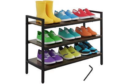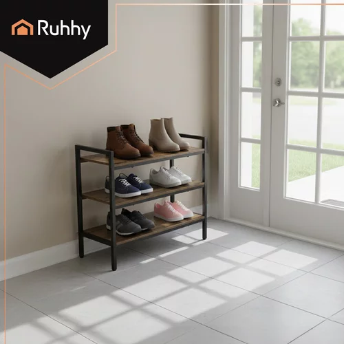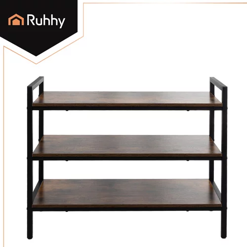Štýlový botník Ruhhy spája funkčnosť, odolnosť a loftový dizajn v kompaktnom prevedení. Tri pevné police ponúknu dostatok miesta pre obuv celej rodiny, zatiaľ čo kombinácia kovového rámu a drevených políc dodá interiéru moderný a útulný vzhľad. Ideálne riešenie pre udržanie poriadku aj v menších predsieňach bez zbytočného zabírania priestoru.