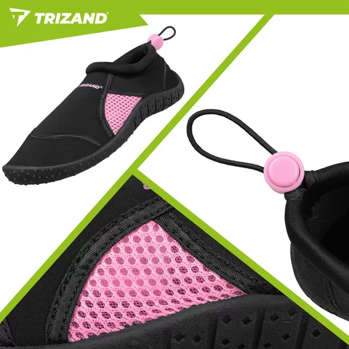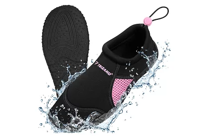 Vydejte se k vode pripravené a v pohodlí. Vodné topánky chránia chodidlá pred ostrými kameňmi, mušľami i klzkým povrchom a zároveň poskytujú komfort pri chôdzi na pláži, pri bazéne alebo pri vodných aktivitách. Štýlové čierno-ružové prevedenie dopĺňa ľahká konštrukcia a rýchloschnúci materiál pre maximálne pohodlie počas celého dňa.