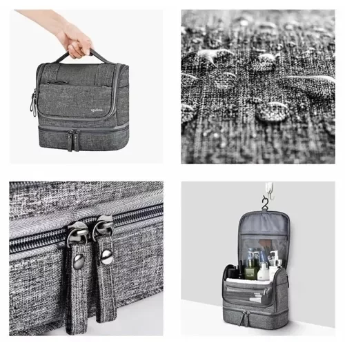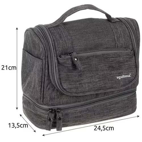 Praktická cestovná taška umožňuje usporiadať kozmetiku a doplnky počas ciest, služobných ciest aj pobytov vo voľnej prírode. Vďaka závesnému háčiku máte všetky veci na dosah a vodoodolný materiál chráni obsah pri sprchovaní alebo nečakanom kontakte s vodou. Viac vreciek zabezpečuje perfektný prehľad a rýchly prístup ku všetkým nevyhnutnostiam, zatiaľ čo zips a držadlo umožňujú pohodlné používanie.