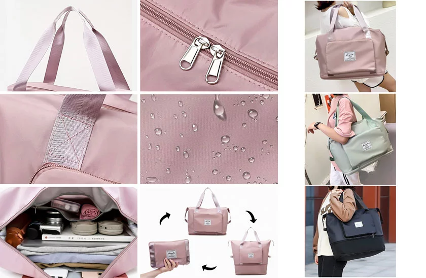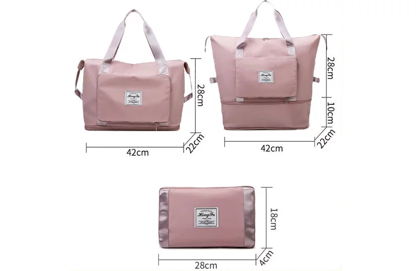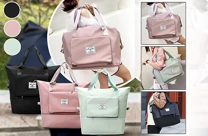 Cestovná skladacia taška s veľkým úložným priestorom vám poskytne všetko, čo pri cestovaní potrebujete. Umožní vám pekne usporiadať jednotlivé veci, aby ste ich v prípade potreby pohodlne našli. Priestor na oddelenie mokrých a suchých vecí, skladací design. Taška je vhodná ako osobná batožina u všetkých leteckých spoločností. Vďaka svojej rozširujúcej funkcii je možné túto tašku využiť na uloženie veľkého množstva vecí, alebo ako malú skladnú tašku.