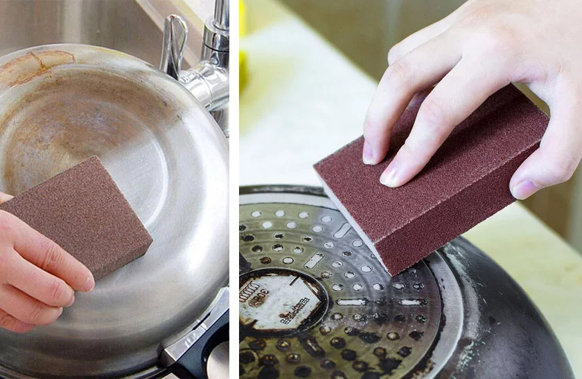 Magická brusná hubka špeciálne určená na pripáleniny, mastnotu a zašlú špinu na kovových predmetoch. Hubka vydrhne veľmi jednoducho, rýchle a efektívne všetku špinu na Vašich hrncoch, ale i čierne dno panvice, špinavý lopárik, či mastné sporáky, drezy, alebo trebárs grily.