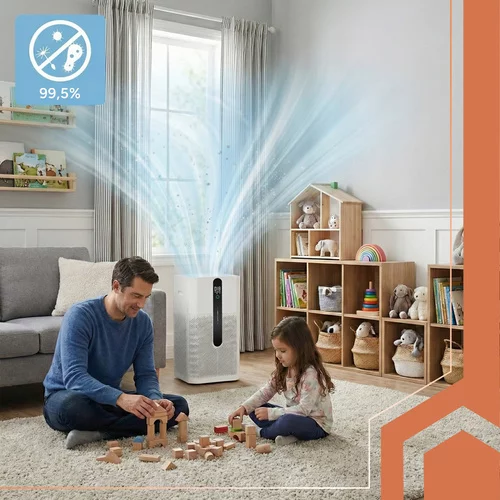 Čistý vzduch bez kompromisov pre alergikov, rodiny s deťmi aj domácnosti v meste. Pokročilá trojitá filtrácia s HEPA H12 a aktívnym uhlím zachytí väčšinu prachu, peľu aj pachov, zatiaľ čo ionizácia osvieži vzduch ako po búrke. Tichý chod, nízka spotreba a ovládanie cez mobil prinášajú pohodlie, zdravšie prostredie a pokoj na každý deň.