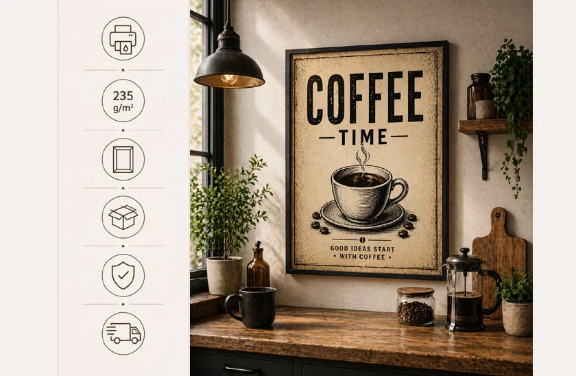 Vytvorte vo svojom interiéri príjemnú atmosféru pomocou elegantného obrazu s motívom kávy. Decentný dizajn a nadčasové spracovanie skvele doplní kuchyňu, jedálenský kút, kanceláriu alebo domácu coffee corner. Kvalitný tlač na pevném fotografickom papieri zaisťuje ostré detaily, výrazné farby a reprezentatívny vzhľad. Obraz je vhodný aj ako originálny darček pre milovníkov kávy a štýlových dekorácií.