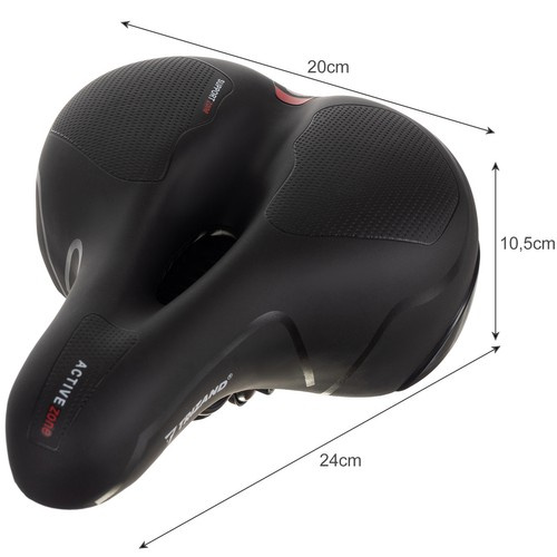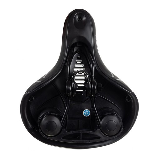 Mäkké a pohodlné sedlo zabezpečí komfortnú jazdu aj na dlhších trasách. Vďaka polstrovaniu a dvojici pružín efektívne tlmí vibrácie a podporuje správne držanie tela. Reflexný pásik zvyšuje bezpečnosť pri jazde za zníženej viditeľnosti a kryt proti dažďu udrží sedlo suché. Špeciálne otvory a žliabky podporujú prúdenie vzduchu, znižujú potenie a zabezpečujú lepšiu cirkuláciu vzduchu počas jazdy.
