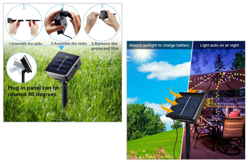 Klasická solárna LED reťaz je napájaný pomocí solárneho panelu. Počas dňa sa nabíja, v noci sa svetlo samo rozsvieti. Táto reťaz stačí len vhodne umiestniť, fantázii sa medze nekladú, môžete si ozdobiť akýkoľvek stromček na záhrade, verandu, pergolu, bránu, plot a nemusíte sa starať o prívod energie. Pretože výrobok má solárny panel, ktorý cez deň nabíja, dobíjacia batéria v ovládacej krabičke a senzor stmievania v noci automaticky prepne do režimu svietenia.