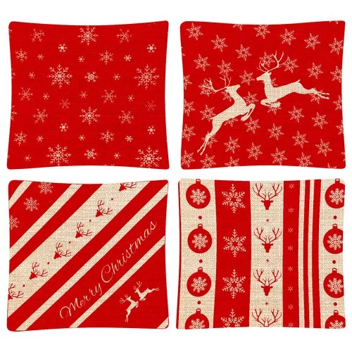 Vytvorte vianočnú atmosféru doma s elegantnou sadou štyroch dekoratívnych povlakov na vankúše. Povlaky sú vyrobené z prémiového ľanového materiálu, ktorý je odolný, príjemný na dotyk a ekologický, a zachováva si svoj dokonalý vzhľad aj po dlhodobom používaní. Vianočné vzory na prednej strane dodávajú vankúšom slávnostný charakter a umožňujú ľahko vytvoriť útulné a harmonické prostredie. Praktické zapínanie na zips zabezpečuje pohodlné nasadzovanie a snímanie, aniž by boli viditeľné spojovacie prvky.
