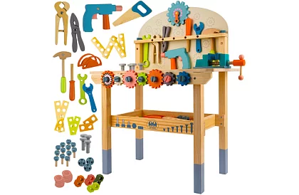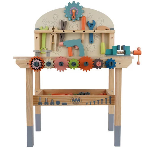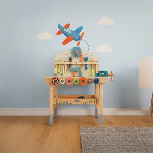 Bezpečná a zábavná drevená dielňa prináša hodiny kreatívnej hry. Zaoblené hrany a netoxické materiály zabezpečujú bezpečnosť aj pre najmenšie deti. Odolné náradie a pevná konštrukcia umožňujú intenzívne hranie bez rizika poškodenia. Dielňa rozvíja manuálne zručnosti, koordináciu a fantáziu, a ponúka priestor na skrutkovanie, otáčanie svorkou a ďalšie kreatívne aktivity. Perfektný nápad na darček pre domácnosť, škôlku alebo herňu.