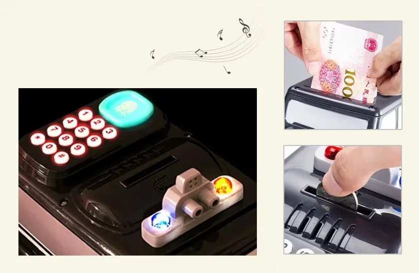 Detská pokladnička je veľmi atraktívnou alternatívou k tradičnému prasiatku. Špecifický design a mnoho zvukových a svetelných efektov pritiahnu pozornosť detí a povzbudia ich, aby si šetrili svoje vreckové.