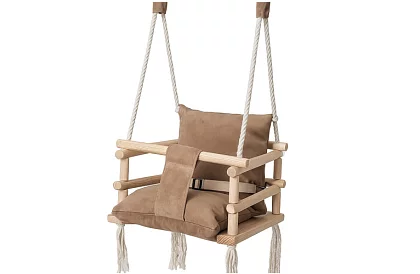 Štýlová a bezpečná hojdačka pre najmenšie deti, ktorá spája pohodlie, dizajn a vysokú bezpečnosť. Mäkké zamatové prevedenie je príjemné na dotyk a zároveň praktické na údržbu. Stabilná konštrukcia z borovicového dreva a pevné laná zabezpečujú bezpečné hojdanie doma aj na krytej terase. Vďaka bezpečnostným pásom je vhodná už pre deti od 12 mesiacov.