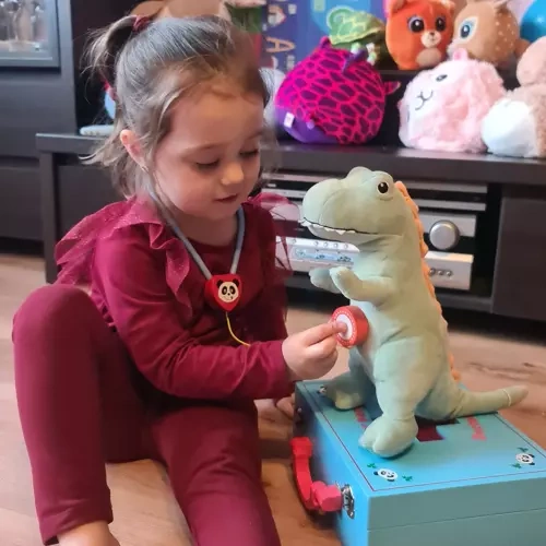 Hravá a bohato vybavená lekárska sada, ktorá deťom umožní nahliadnuť do sveta doktorov zábavnou a prirodzenou formou. Vďaka realistickým doplnkom si deti môžu hrať na ošetrovanie bábik, plyšákov aj rodičov, rozvíjať fantáziu, jemnú motoriku a učiť sa základom starostlivosti o zdravie. Drevené prevedenie zabezpečuje odolnosť, bezpečnosť a nadčasový vzhľad.