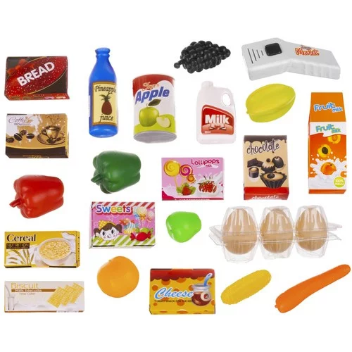 • Farebné produkty a doplnky napodobňujúce skutočný supermarket