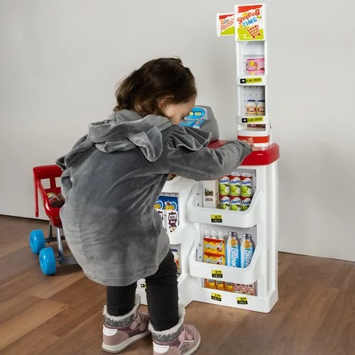 Skvelá hracia sada, ktorá simuluje skutočný supermarket a ponúka deťom hodiny zábavy a učenia. Sada kombinuje pokladňu s váhou, produkty, regály aj vozík, takže si deti môžu hrať na nákupy samostatne alebo v skupine. Realistické zvuky a svetlá zvyšujú atraktivitu hry a podporujú rozvoj predstavivosti a zručností pri hraní rolí.