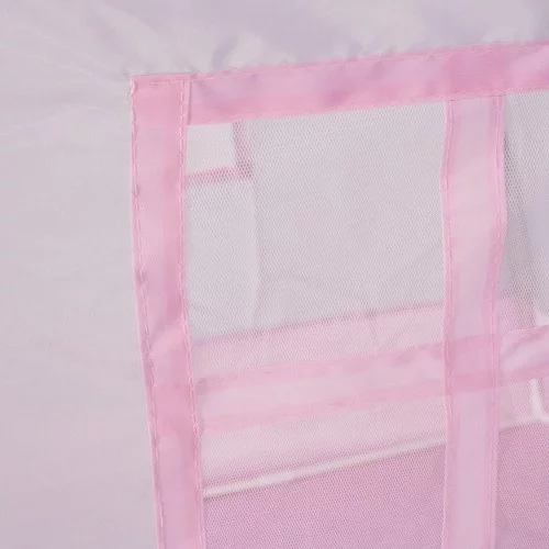 Detský stan v tvare domčeka ponúka hodiny zábavy a fantazijných hier pre každú dievčatko. Jemné sieťované okná a praktický vchod umožňujú bezpečné schovanie obľúbených hračiek a vytvárajú ideálne miesto pre kreatívne a nápadité hranie. Stan je vhodný ako do interiéru, tak vonku, napríklad na záhrade, terase, pikniku alebo na pláži. Dodá priestoru jedinečnú atmosféru a môže slúžiť aj ako úložný priestor pre hračky.