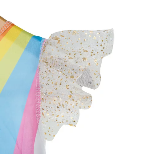 Kúzelný kostým umožňuje stať sa malou princeznou a prináša okamžitú radosť. Kompletná sada obsahuje šaty, zlaté krídla a čelenku s rohom, takže je pripravená na okamžitú hru, na karnevalový ples, halloweenskú párty, narodeninovú oslavu či školské predstavenie. Vďaka všestrannému použitiu sa hodí na každú príležitosť a splní detské sny o kúzelných postavách. Kostým je ľahký, pohodlný a ľahko sa udržuje, čo zaisťuje, že každá hra bude bez starostí.