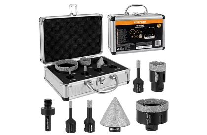 Profesionálna sada diamantových dierovacích vykružovákov je určená na presné vŕtanie do tvrdých a veľmi tvrdých materiálov, kde bežné nástroje nestačia. Vakuovo pájené diamanty zabezpečujú čisté rezy bez odštiepenia a praskania, stabilný výkon a dlhú životnosť. Vďaka širokému rozsahu priemerov je sada ideálna na inštalačné, montážne aj rekonštrukčné práce v domácom i profesionálnom použití.