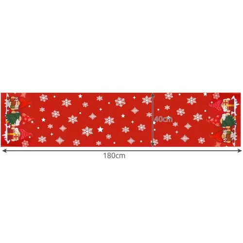 Behúň prináša slávnostnú atmosféru a zútulní každý interiér. Jemný vzorec snehových vločiek a hviezd doplnený roztomilými škriatkami s darčekmi na koncoch vytvára kúzelnú kulisu pre vianočné stolovanie. Odolný polyester zabezpečuje dlhú životnosť a laserom rezané okraje zabraňujú trhaniu nití, vďaka čomu je behúň praktický, ľahko udržiavateľný a pripravený na mnoho sezón.