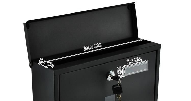 Poštová schránka je vyrobená z pozinkovanej ocele, takže nerozpadá a vydrží mnoho sezón. Je vybavená krytom, ktorý chráni korešpondenciu pred poveternostnými vplyvmi, a tubusom pre noviny a letáky. Sada obsahuje montážne kolíky a podložky pre jednoduché upevnenie na stenu a dva kľúče pre bezpečné zamykanie.