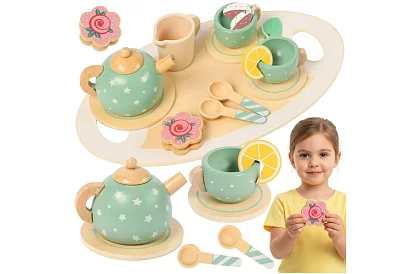 Kúzelný čajový dýchánek plný fantázie a radosti z hrania. Drevená čajová sada umožňuje deťom prevziať rolu malých hostiteľov, rozvíja kreativitu, sociálne zručnosti i jemnú motoriku. Prírodné materiály, hladké hrany a bezpečné farby prinášajú pokoj rodičom a dlhé hodiny zábavy deťom.
