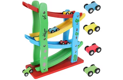 S touto drevenou dráhou si deti užijú hodiny zábavy pri púšťaní autíčok. Farebné autíčka rozvíjajú jemnú motoriku, manuálnu zručnosť a schopnosť rozpoznávať farby. Hračka je bezpečná, odolná a ekologická alternatíva k plastovým hračkám, ktorá podporuje hravé učenie a logické myslenie.