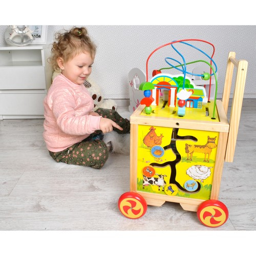 Odstrkovadlo s interaktívnou kockou prináša zábavu a podporu pri učení prvých krokov. Dieťa sa učí správnemu držaniu tela, rozvíja koordináciu a zároveň objavuje kreatívne aktivity na každej strane kocky. Vďaka odnímateľnej motorovej slučke s korálkami si môže hrať aj samostatne. Prírodné drevo a ekologický dizajn zaručujú bezpečnosť, odolnosť a dlhú životnosť hračky.