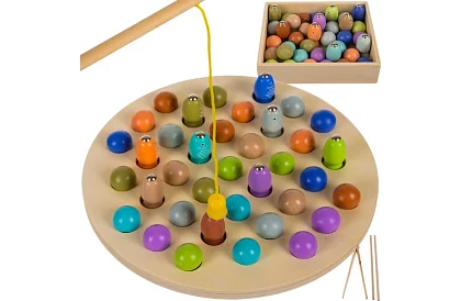 Rozvíjajte detskú fantáziu a manuálnu zručnosť s touto zábavnou magnetickou hrou. Deti sa učia sústredeniu, logickému mysleniu a vizuálnej pamäti, zatiaľ čo chytajú farebné rybičky pomocou rybárskeho prútu s magnetom. Pevné drevené prevedenie zaisťuje dlhú životnosť a množstvo hodín zábavy.