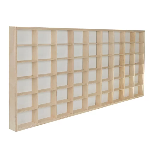 Usporiadajte svoju zbierku figúrok, autíčok s eleganciou a prehľadom – 54 presne vyrezaných priehradiek zabezpečuje, že každý model má svoje vlastné miesto. Polica je nielen praktická, ale aj dekoratívna, podporuje poriadok a vystavuje zbierku tak, aby bola stále na očiach.