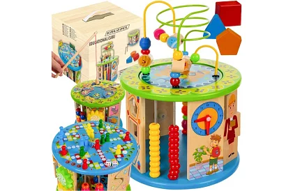 Rozvíja motoriku, logické zručnosti a koordináciu, zatiaľ čo deti objavujú svet farieb, tvarov a pohybu. Interaktívne prvky ako korálky, rotujúce bloky alebo bludisko upútajú pozornosť a podporujú kreatívnu a zmyslovú hru. Bezpečné materiály a hladký povrch zaisťujú, že hranie je pohodlné a bez rizika pre malé ručičky.