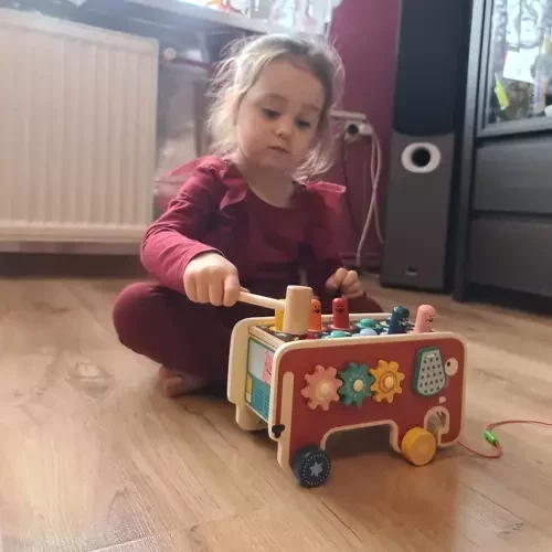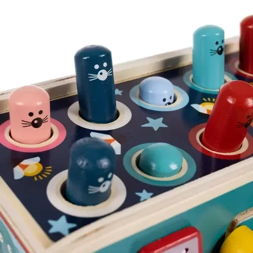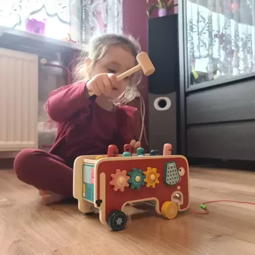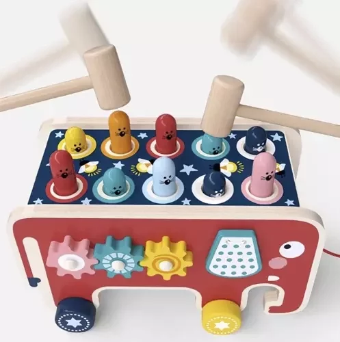 Farebná drevená hračka v tvare slona, ktorá ponúka zábavu aj rozvoj zároveň. Dieťa si precvičuje logické myslenie, motoriku rúk, koordináciu oko-ruka a učí sa farby aj počítanie. Hra podporuje kreativitu, sociálne zručnosti a samostatnú aj skupinovú hru, pričom prináša radosť celej generácii.