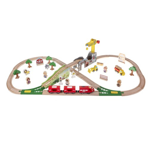 Veľká sada drevenej vláčkodráhy ponúka 57 starostlivo vyrobených a detailne dokončených prvkov, s ktorými si dieťa môže postaviť vlastnú trať aj krajinu okolo nej. Magnetické spojenie vlakov zabezpečuje bezpečné a pevné prepojenie, zatiaľ čo doplnky ako stromy, budovy, figúrky a žeriav podnecujú kreativitu a hodiny zábavy.