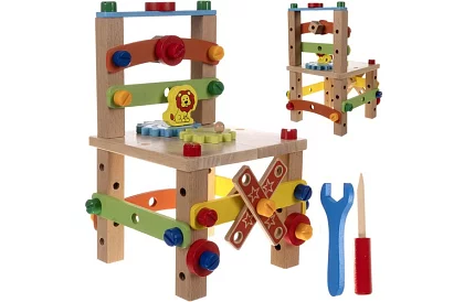 Drevená senzorická stolička je interaktívna hračka, ktorá spája zábavu so vzdelávaním a rozvojom dieťaťa. Vďaka možnosti zostavenia si dieťa užije veľa zábavy a zároveň sa učí základom mechaniky a tímovej spolupráce. Farebné ozubené kolesá produkujú zvuky, stimulujú senzorickú integráciu a rozvíjajú kreativitu. Stolička podporuje motorický rozvoj, predstavivosť a intelektuálne schopnosti dieťaťa a je bezpečná vďaka prírodnému drevu bez umelých materiálov.