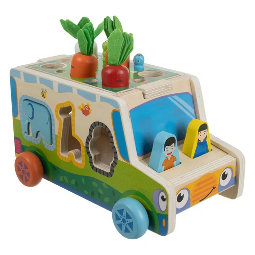 Montessori triedič tvarov spája hru a učenie – dieťa si precvičuje logické myslenie, jemnú motoriku a spoznáva farby i tvary. Vďaka 6 farebným mrkvám, figúrkam zvierat, posuvným prvkom a úložnému priestoru vo vnútri autíčka sa rozvíja predstavivosť, presnosť a samostatnosť. Prírodné drevo s hladkým povrchom zaručuje bezpečnú a odolnú hru.