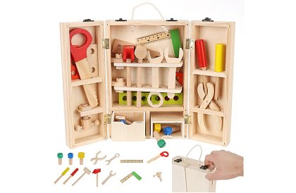 Malý kutil si vďaka tejto drevenej sade náradia užije hodiny zábavy a zároveň rozvíja jemnú motoriku, kreativitu a logické myslenie. Krabica s pohodlným madlom a vnútornými priehradkami umožňuje udržať poriadok a všetky nástroje mať vždy po ruke. Sada je bezpečná, odolná a ideálna pre prvé stavebné pokusy detí.