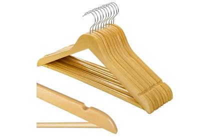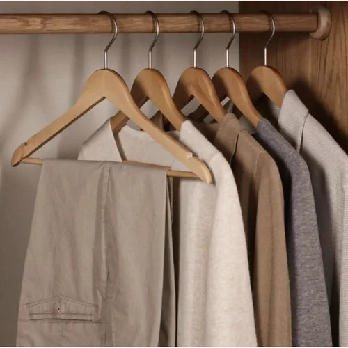 Elegantné drevené ramienka prinášajú do šatníka poriadok, prehľadnosť a dlhodobú ochranu oblečenia. Masívne drevo s jemným bezfarebným lakom zaisťuje vysokú odolnosť, prirodzený vzhľad a ochranu proti vlhkosti i poškrabaniu. Ergonomický tvar pomáha udržať prirodzený tvar odevov, znižuje riziko pomačkania a dodáva šatníku jednotný, čistý štýl.