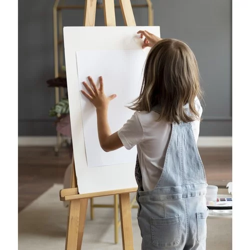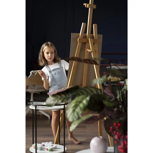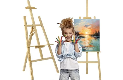 Kvalitný drevený stojan, ktorý poskytuje stabilnú a pevnú oporu pre plátna a maliarske dosky, je ideálny pre umelcov všetkých úrovní. Nastaviteľná výška a uhol sklonu umožňujú pohodlnú prácu a precízne pozorovanie z rôznych uhlov, zatiaľ čo skladacia konštrukcia zabezpečuje jednoduché prenášanie a skladovanie.