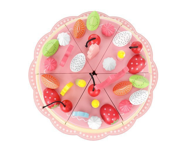 Tento drevený set narodeninovej torty ponúka nekonečnú kreatívnu zábavu pre malé aj väčšie deti. Môžete tortu ozdobiť podľa vlastných predstáv, pridávať ovocie, pusinky a sviečky, ktoré držia vďaka magnetom. Hotovú tortu je možné „nakrájať skutočným nožom“ a servírovať na taniere, čo precvičuje jemnú motoriku a pripravuje deti na používanie skutočného noža. Farebné prvky zaujmú a umožnia hodiny hrania a učenia.