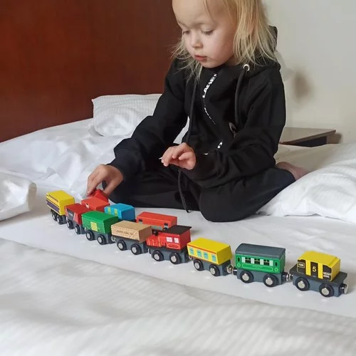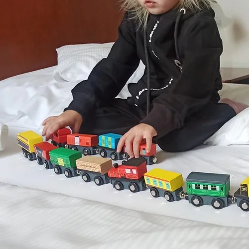 Zábavná a vzdelávacia hračka, ktorá deti zabaví na dlhé hodiny a zároveň ich učí cenným zručnostiam. Hra s dreveným vláčikom stimuluje zrak, podnecuje predstavivosť a rozvíja priestorové myslenie, ideálne pre kreatívne hranie doma aj s rovesníkmi.