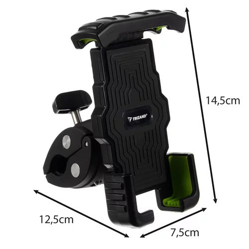 Univerzálny držiak telefónu je vhodný pre bicykle, kolobežky, kočíky aj motocykle. Vďaka protinárazovej a pevnej konštrukcii zaisťuje stabilné uchytenie telefónu aj pri dynamickej jazde v teréne. Trojitý bezpečnostný systém, nastaviteľné ramená a otáčanie o 360° poskytujú maximálnu flexibilitu a viditeľnosť obrazovky.
