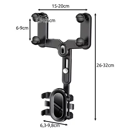 Zabezpečuje bezpečné a stabilné uchytenie telefónu na spätné zrkadlo auta. Vďaka pevnej konštrukcii, mäkkým ochranným podložkám a nastaviteľnej 4-bodovej úchytke drží telefón bezpečne aj pri jazde po hrboľatých cestách. Kompaktný dizajn neobmedzuje zorné pole vodiča a umožňuje nastavenie polohy telefónu presne podľa vašich potrieb.